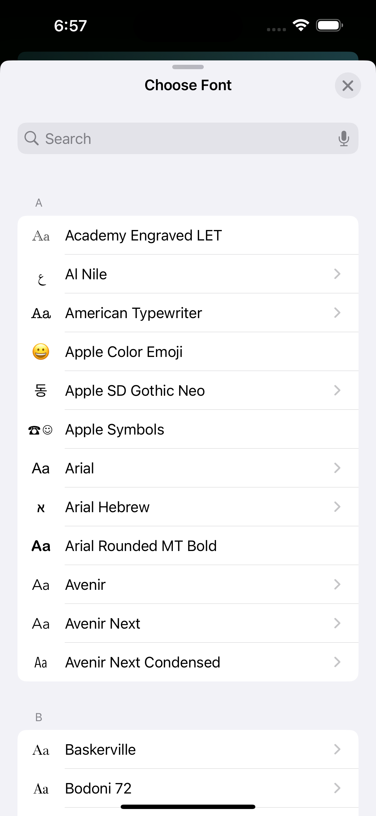 Additionally, the iOS text formatting keyboard can also be accessed by navigating down through the submenu as shown in the images below. This allows for a rich set of features, such as font selection, text formatting and styling, among other features.